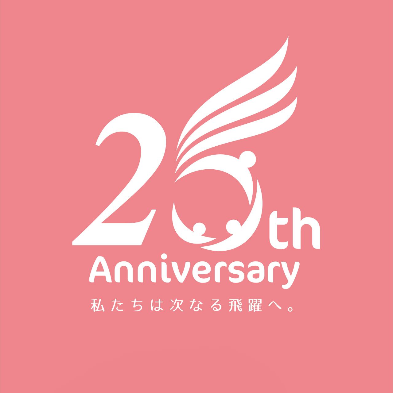 25周年を祝うこのロゴは、過去25年の歩みと未来への飛躍を象徴するデザインです。流れるような曲線を持つ「2」は、これまでの歴史の積み重ねを優しく表現し、続く「5」は、羽を広げた人々のシルエットで構成されています。この人々は、社員、顧客、パートナーなど、多様な関係者が互いに支え合い、協力し合うことで、より高みを目指して羽ばたく姿を象徴しています。